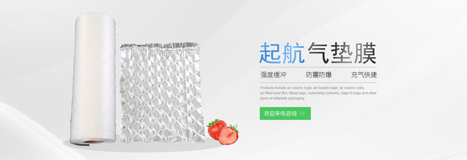 溫州起航包裝科技有限公司產品涉及氣柱袋,氣泡袋,氣柱卷材,充氣葫蘆卷膜,填充袋,緩沖氣墊,袋中袋等多種類型的充氣包裝.電話:13906665582